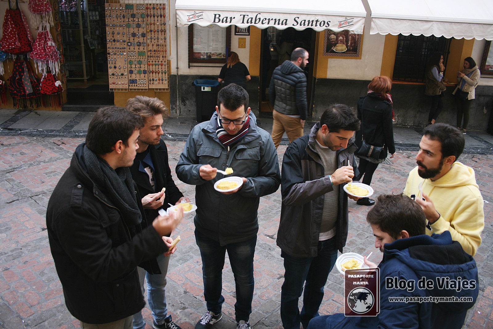 Bar Santos: Lugar imprescindible en una de las esquinas de la mezquita de Córdoba, hay que probar su famosa Tortilla gigante (que se hacen con mas de 20 huevos). El lugar no tiene espacio para tomar dentro y todo el mundo opta por sentarse en el muro que rodea a la muralla de la Mezquita.