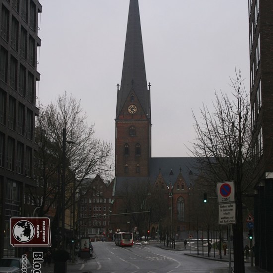 Hauptkirche St. Jacobi – St. James’ Church: Iglesia de San Jacobo, es una de las 5 iglesias principales de Hamburgo, es de creencia Luterana y dispone de una gran torre de 125 metros de altura en forma de pico.