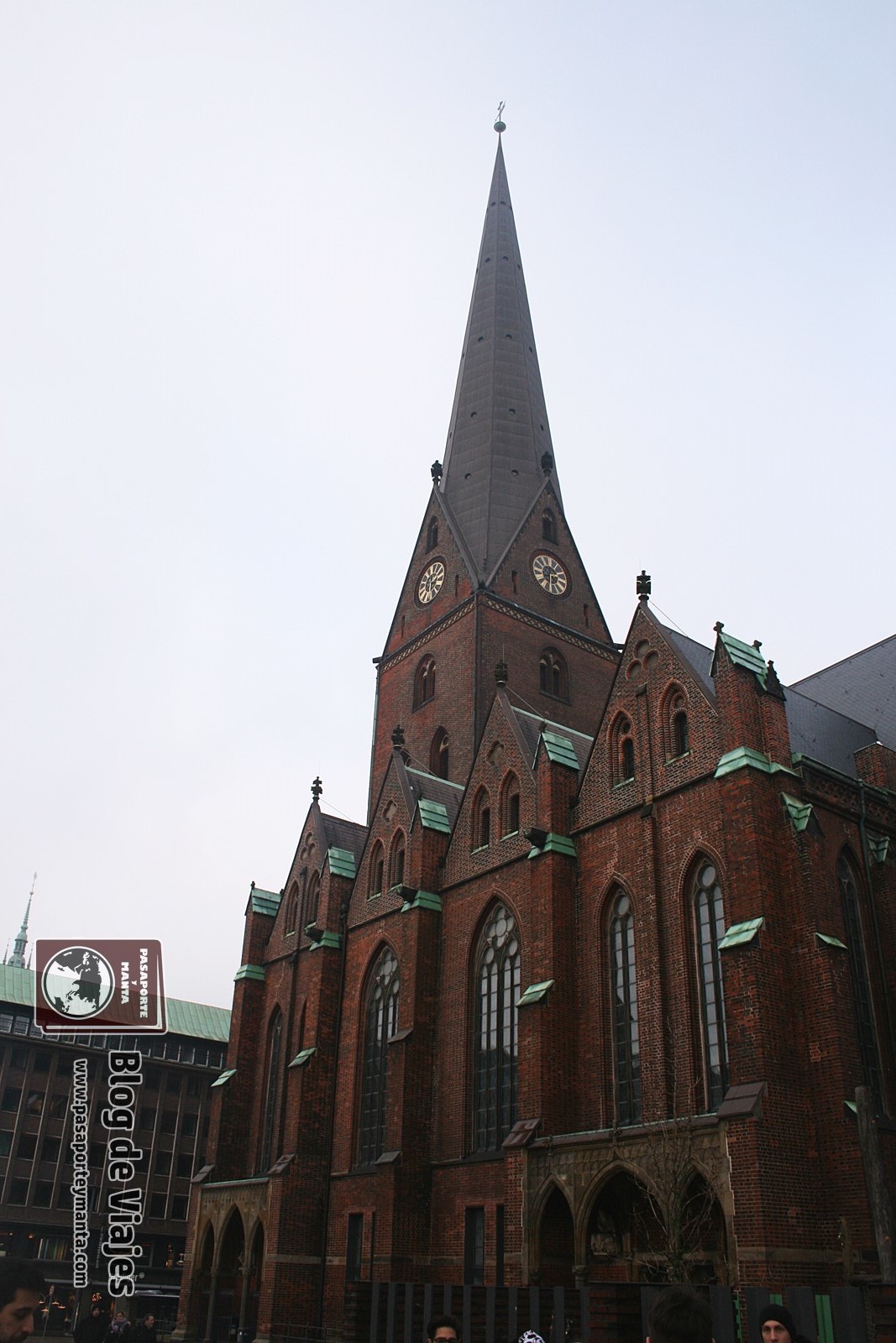 Hauptkirche St. Jacobi – St. James’ Church: Iglesia de San Jacobo, es una de las 5 iglesias principales de Hamburgo, es de creencia Luterana y dispone de una gran torre de 125 metros de altura en forma de pico.