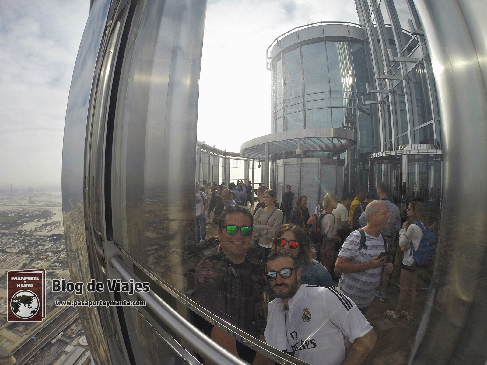 Antes de acceder a la zona de ascensores, hay varios vídeos que indican como fue la construcción de este edificio y también la arquitectura que tiene. El ascensor tarda en subir apenas 20 segundos hasta el mirador (Observation Deck), que está a unos 452 metros. La parte «descubierta» solo deja ver la parte norte de la Ciudad de Dubai, luego si seguimos caminando podemos ver la parte sur a través de una cristalera y dentro del edificio. Estuvimos un rato admirando todas las vistas y retratando para la posteridad este momento.