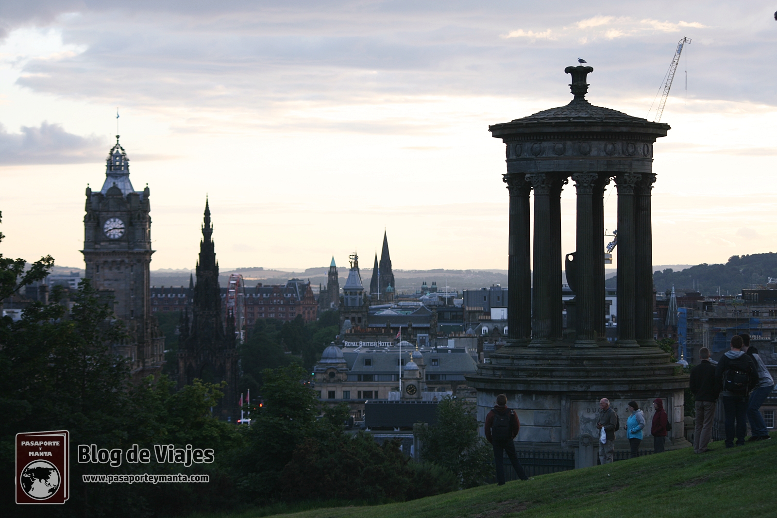 hacia la parte más alta de la ciudad Calton Hill, es una colina en la que se encuentran algunos monumentos por lo que la ciudad fue calificada como la «Atenas del Norte», desde allí se pueden ver las mejores vistas áreas de la ciudad. También si miramos para el lado contrario al Castillo de Edimburgo, podemos contemplar el barrio de Leith en el que se basa la película de Transpoiting 2, y también podemos ver el estuario que se forma por la entrada del Mar del Norte por esta parte de Escocia.