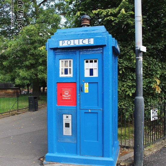 Continuamos por esa calle y nos encontramos una clásica «Police Box» que son pequeñas casetas azules donde antiguamente se ubicaban pequeñas comisarías, básicamente consistían en una cabina instalada en un lugar público que por dentro se acondicionaba como una comisaría de policía en miniatura, con un teléfono, un libro de incidencias y un kit de primeros auxilios.