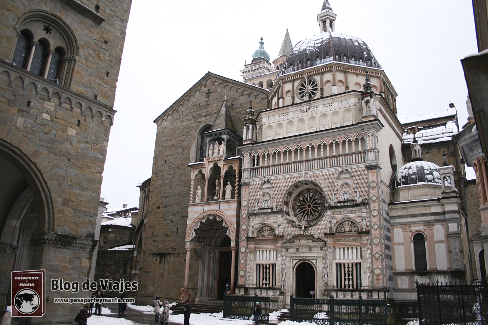 A pocos metros nos encontramos con la Piazza del Duomo de Bergamo, en la cual se encuentran dos edificios muy importantes en el patrimonio de Bérgamo, la gran Catedral de Bergamo y también la Basílica de Santa María La Mayor que data el sigo VIII.