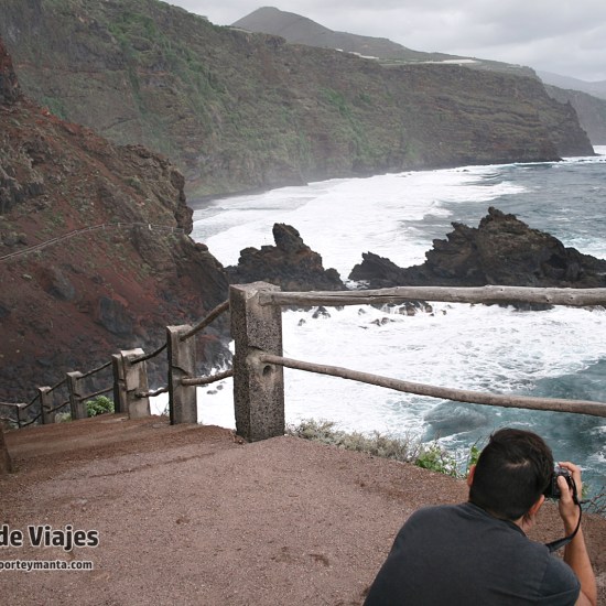 Pusimos rumbo a el Parque de la Zarza un pequeño parque con un conjunto de grabados y pinturas de carácter arqueológico muy interesante (Entrada 2 €). Continuamos por la carretera LP1 en un trayecto más largo de coche hacia El Charco Azul, totalmente increíbles las panorámicas que se pueden apreciar por esta carretera. Allí tomamos un café en el Bar Restaurante y nos pusimos a ver como el mar golpeaba con fuerza estas piscinas naturales que en verano son uno de los grandes atractivos turísticos de la zona.