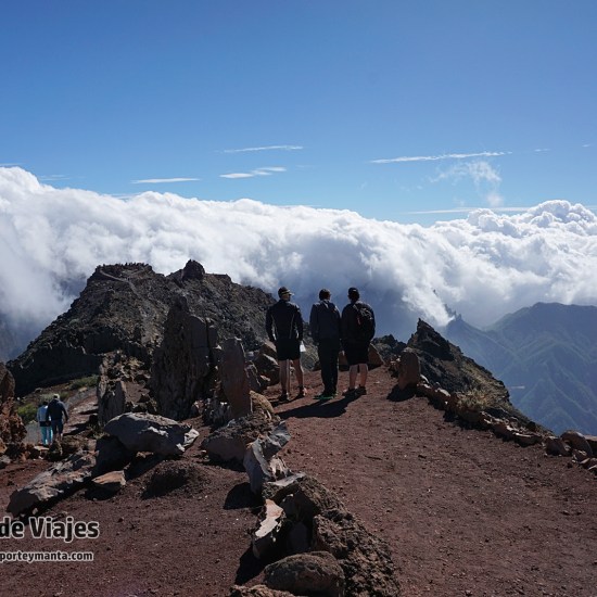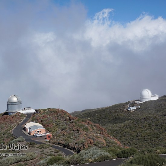 Tomamos la carretera LP4, en dirección al observatorio del Roque de los Muchachos, el punto mas alto de la isla, tras 45 minutos conduciendo por la sinuosa LP4, y tras haber apreciado varios cambios de clima, pasando por lluvia, viento y sol, llegamos a la explanada del Mirador, que tiene unos pocos aparcamientos y que merece pasar un rato allí observando cómo el mar de nubes aparece y desaparece entre los picos o «riscos» como los llaman allí.