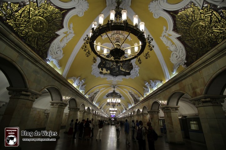- Komsomólskaya-Koltsevaya (Комсомóльская-Кольцевая): También situada en la linea 5 (la circular y de color marrón) destaca por sus gigantes lámparas que le dan una luminosidad increible, sus colores amarillos de las paredes y sus motivos dorados por columnas y techos.