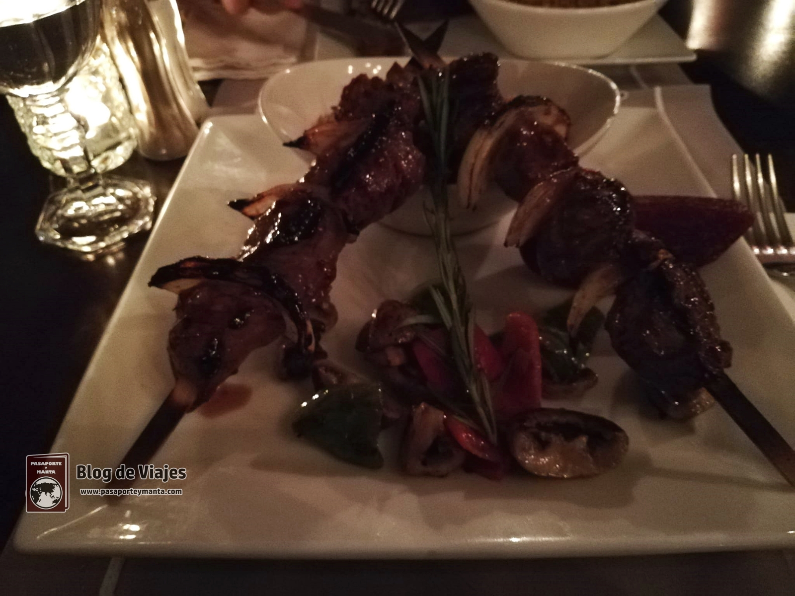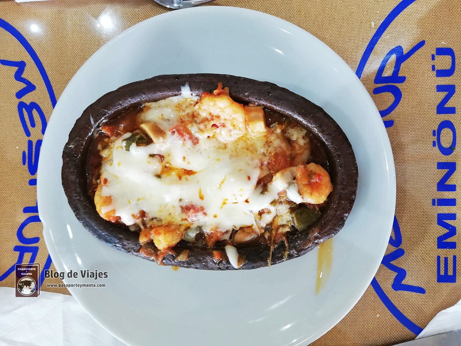 - 5. Kat Restaurant, este restaurante nos lo recomendaron y es una experiencia muy buena con unas vistas sensacionales, algo más caro que los otros pero la calidad merecía la pena. Nosotros probamos el iskender kebab, es una variante de un döner kebab preparado de tiras finas de carne bovina y de cordero al grill y luego puesto en salsa de tomate sobre unos pedazos de pan pide que ha sido generosamente untado en mantequilla fundida y se acompaña de yogur.