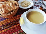 - En el free tour nos recomendaron el restaurante Sirvan Sofrasi, en el que había un menú bastante económico y bueno, consistía en típica Sopa de Lentejas (Mercimek Çorbasi), Hummus y Kebaba adana (Adana kebabı) que es un kebab compuesto del de 70% ternera y 30% cordero, para terminar un té negro con un postre típicos baklava (con una pasta de pistachos o nueces trituradas, distribuida en una masa de hojaldre).