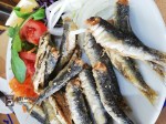 Meşhur Eminönü Balık, restaurante en los bajos del puente de Galata, en el que pudimos disfrutar de pescado en este lugar probamos el plato de caballas (uskumru) y el bocadillo de sardinas y ensalada (balik ekmek salata) y un plato de arroz (pilav).