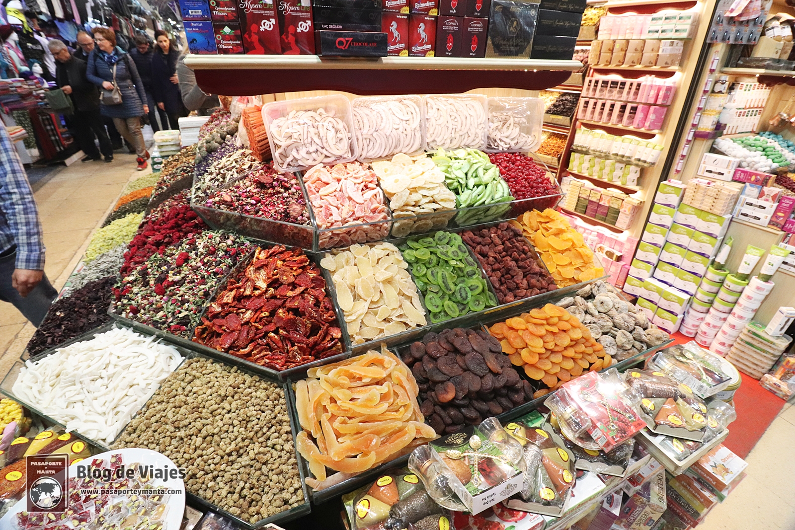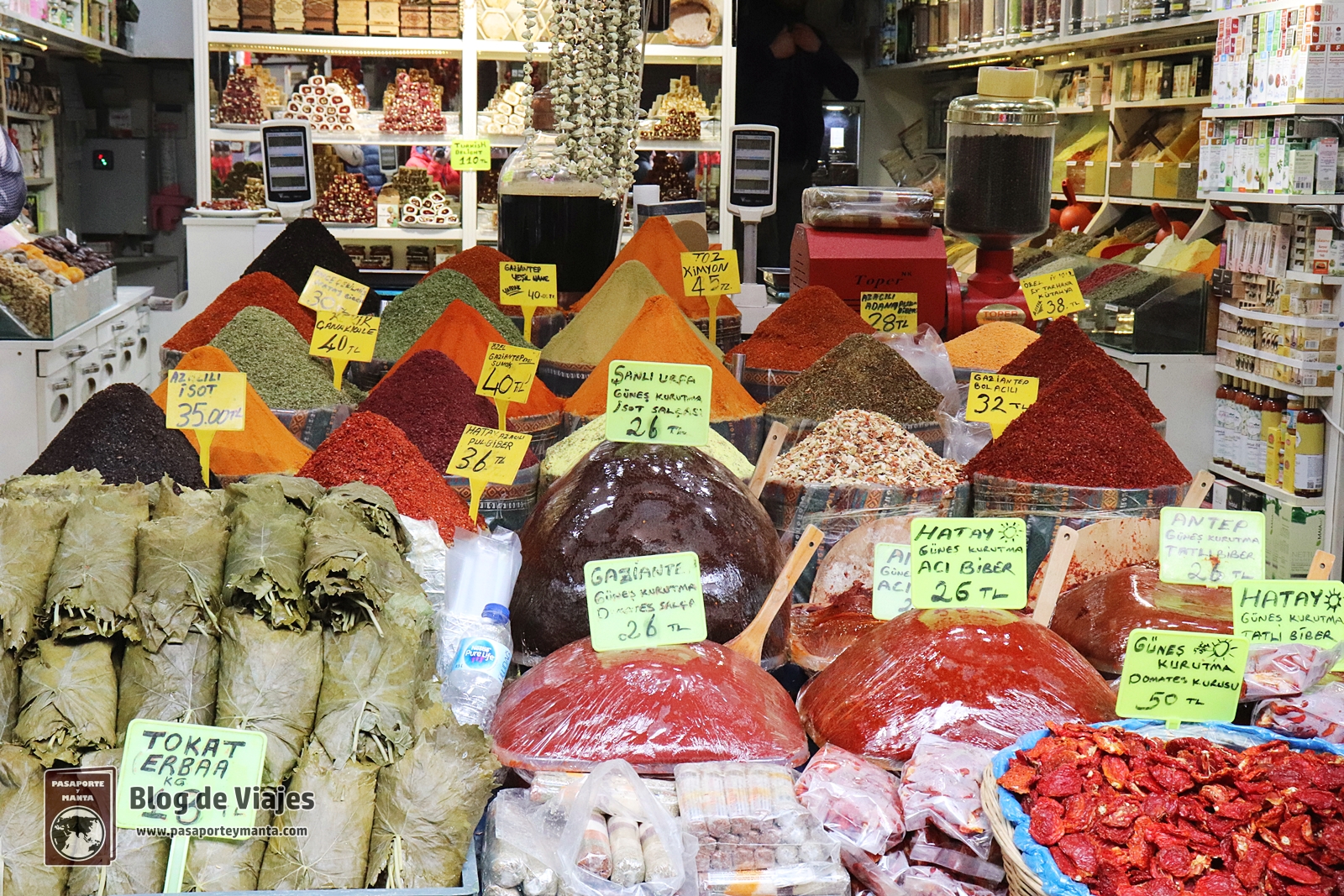 - Cercano a la mezquita estaba la Spices Bazaar (Mısır Çarşısı), el bazar de las Especias o también llamado Egipcio, tiene forma de L, son cerca de 400 metros de puestos llenos de especias y todo tipo de utensilios. Las calles aledañas a este bazar también están muy animadas y tienen todo tipo de souvernirs, aparatos, telas, vestimentas y todo lo que imaginéis. Si queréis un souvenir diferente, os recomendamos un lugar para comprar café turco típico Kurukahveci Mehmet Efendi se puede comprar tanto en molido como en grano.