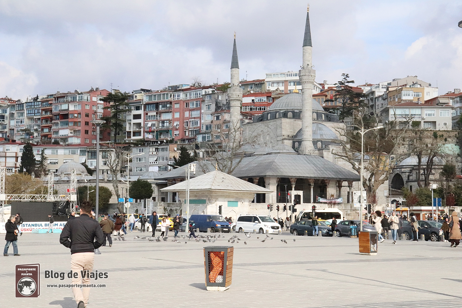 - Caminando hacia el sur llegamos a Üsküdar Square (Üsküdar Meydani) Plaza Üsküdar, donde está gran parte del ambiente del barrio, desde allí se tienen unas instantáneas preciosas de la parte europea donde destacan los grandes edificios de la ciudad financiera y las edificaciones del barrio de Besiktas (conocido por su equipo de fútbol). Justo al lado se encontraba la Şemsi Pasha Mosque (Şemsi Paşa Camii) la mezquita Şemsi Paşa, una pequeña mezquita otomana, incluso que la que vimos de Iskele, lo curioso de ella es que está pegada al mar, y es una de las que se puede ver si haces el paseo el tour por el Bósforo en Ferry.