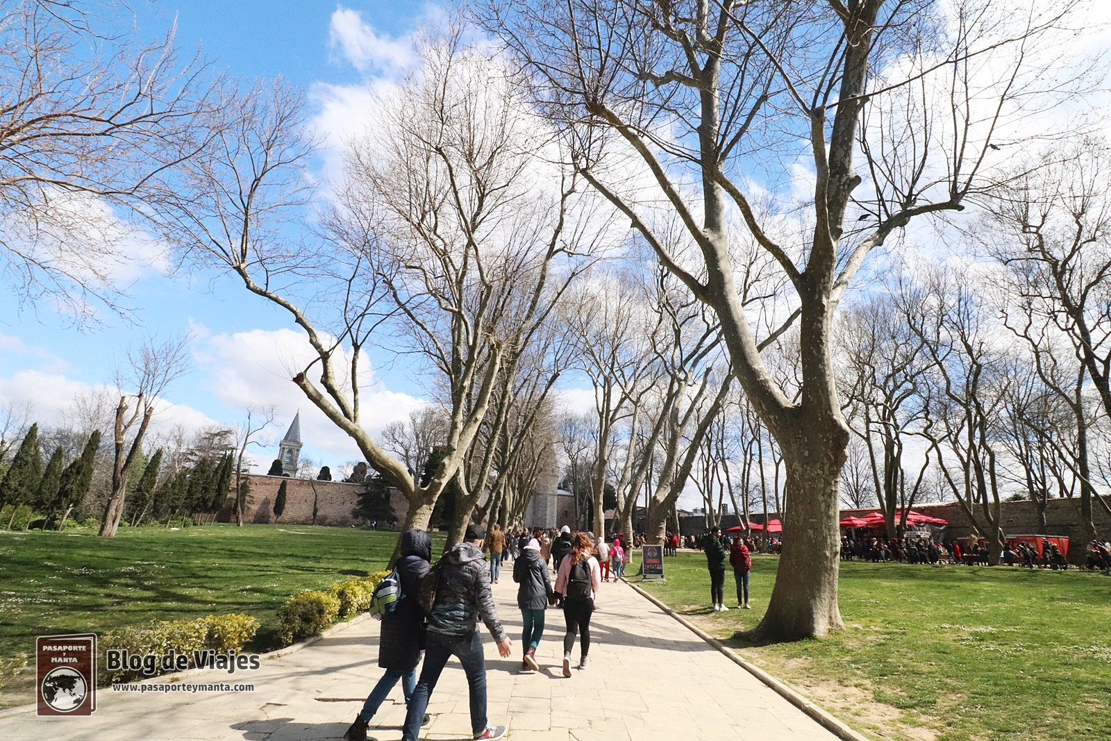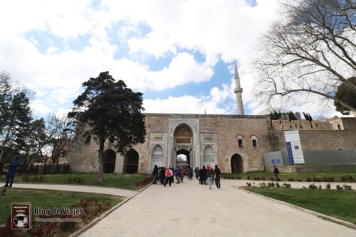 - Topkapı Palace (Topkapı Sarayı), el Palacio de Topkapi o también llamado de la Puerta de los Cañones, fue el centro administrativo del Imperio otomano desde 1465 hasta 1853. Es de estilo otomano de la época imperial, está formado por varios edificios edificios pequeños, construidos juntos y rodeados por cuatro patios. El free tour no llega a entrar y nosotros tampoco por falta de tiempo (Palacio: 60TL (8,6€) – Harén: 35TL (5€)).