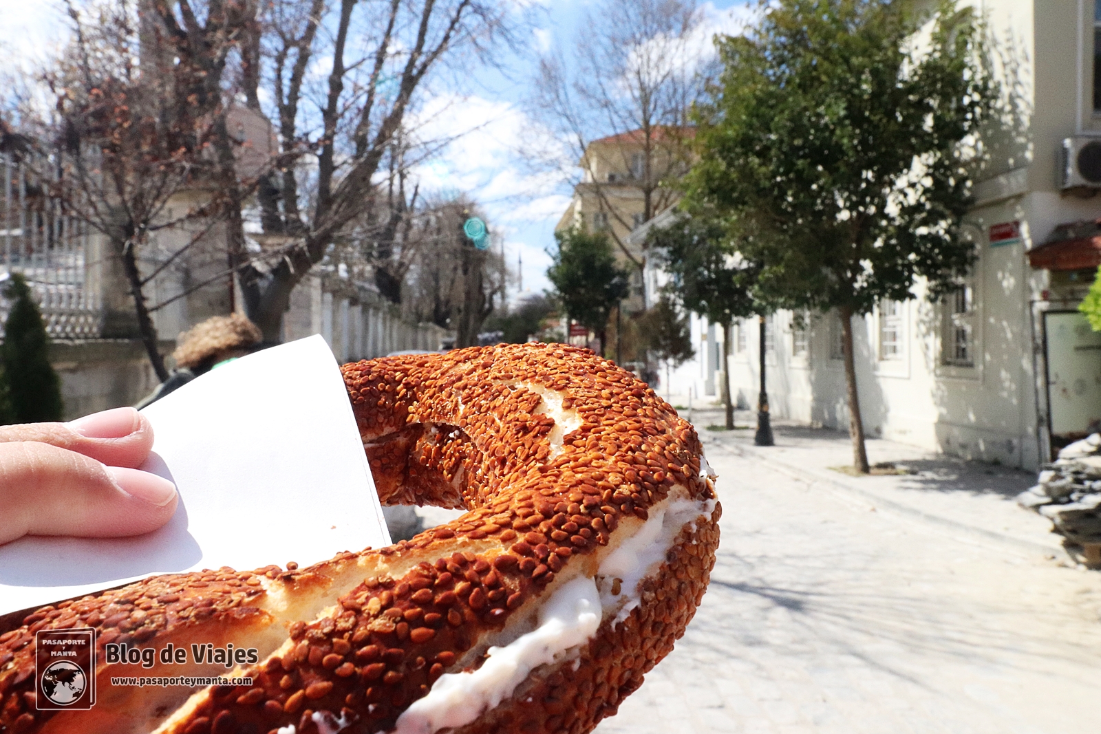 Por la calle os encontrateis un montón de puestos callejeros que venden El Simit o gevrek o koulouri, que es un pan circular que se decora con semillas de sésamo y que se puede tomar solo o con queso o nutella en su interior.