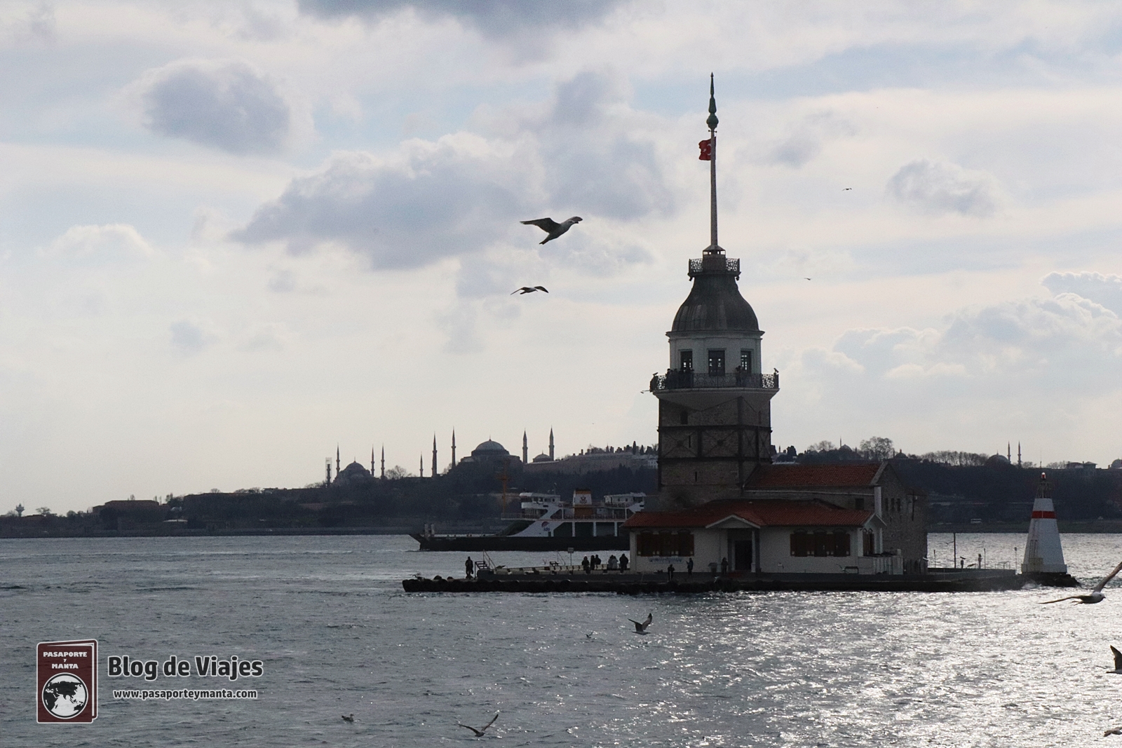 - Desde allí podemos ver la Maiden’s Tower (Kız Kulesi) Torre de la Doncella, una torre en medio del mar creada según la leyenda para «Hay muchas leyendas sobre la construcción de la torre y su localización. Según la leyenda turca más popular, un emperador tenía una hija muy querida y un día, un oráculo profetizó que sería asesinada por una serpiente venenosa en su 18º cumpleaños. El emperador, en un esfuerzo por impedir la temprana muerte de su hija colocándola lejos de la tierra para mantenerla alejada de las serpientes, construyó esta torre en medio del Bósforo para proteger a su hija hasta su 18º cumpleaños. La princesa se instaló en la torre, donde era visitada frecuentemente solo por su padre. » Por wikipedia.