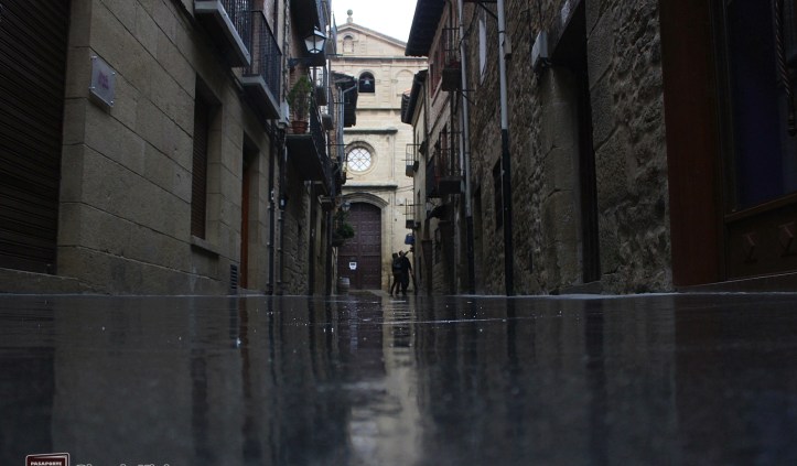 Aprovechamos el día también visitando otro de las villas medievales de esta comarca, situado en lo alto de un cerro se encuentra Laguardia, rodeado de bodegas, lo que mas llama su atención es el centro de la villa, que es completamente peatonal y hace que se pueda disfrutar un agradable paseo, en nuestro caso regado por el «chirimiri», la lluvia típica del País Vasco. Muy recomendable pasear por la Calle Mayor (Mayor Kalea) y también acceder al mirador de la ciudad, ya que desde allí se tienen unas vistas sensacionales de las centenares de hectáreas de viñedo de la localidad.